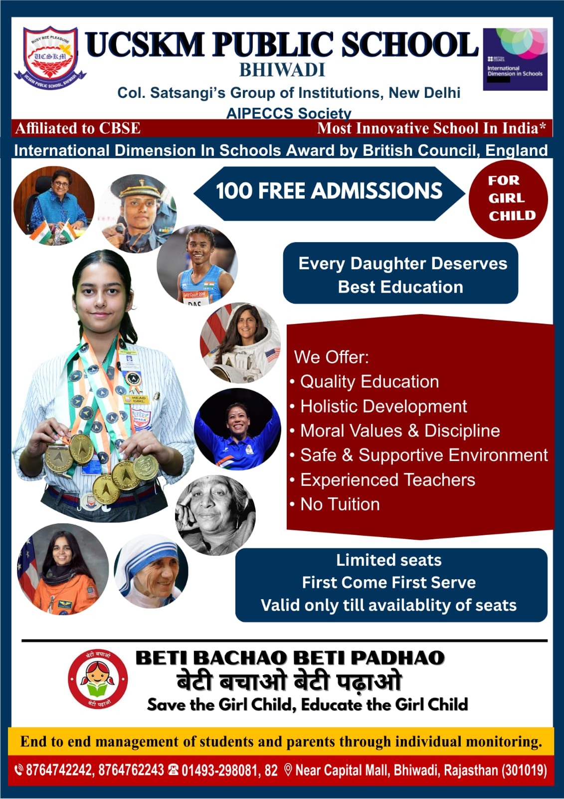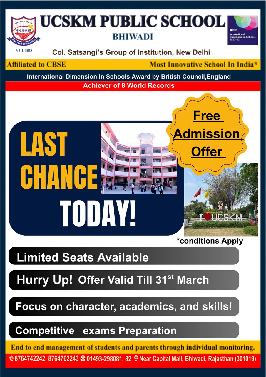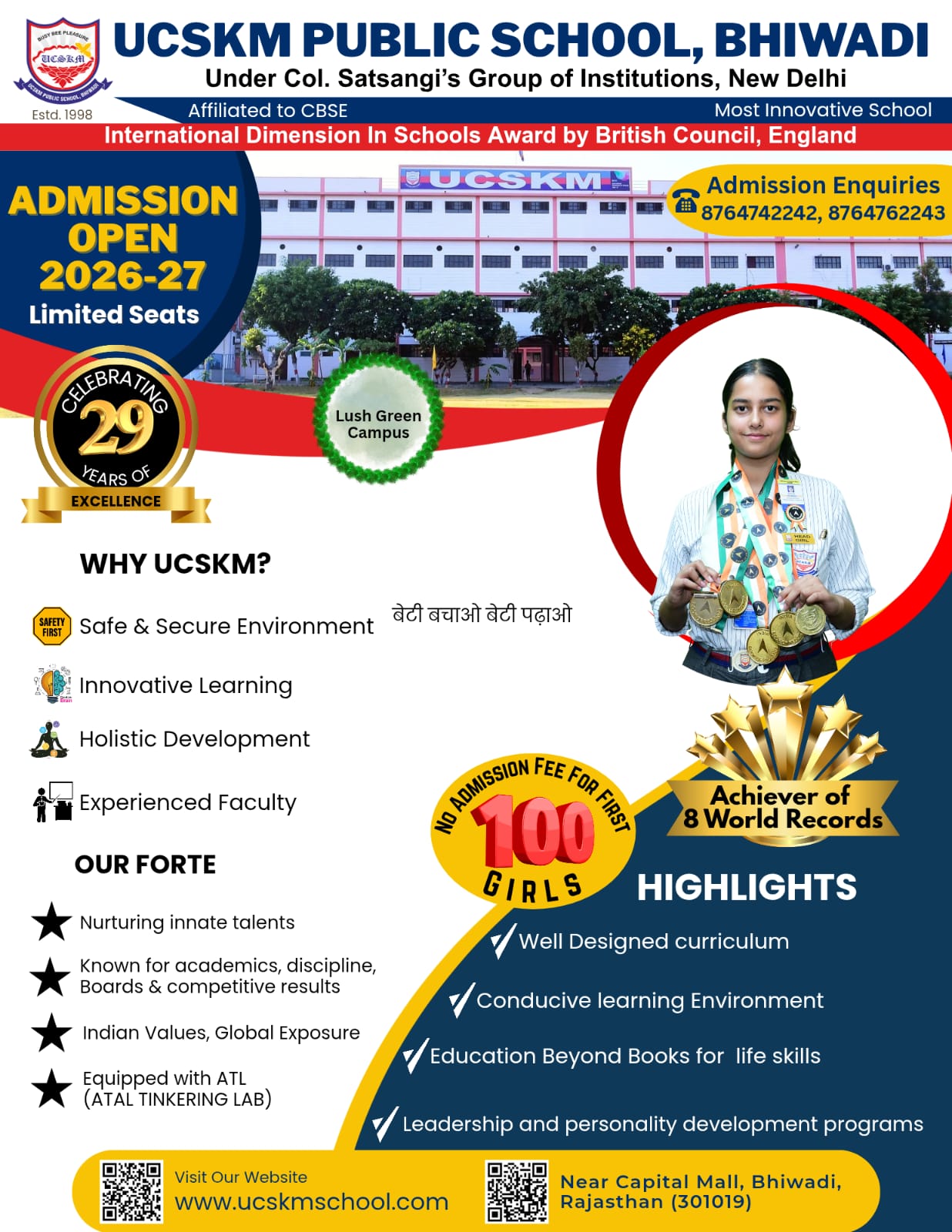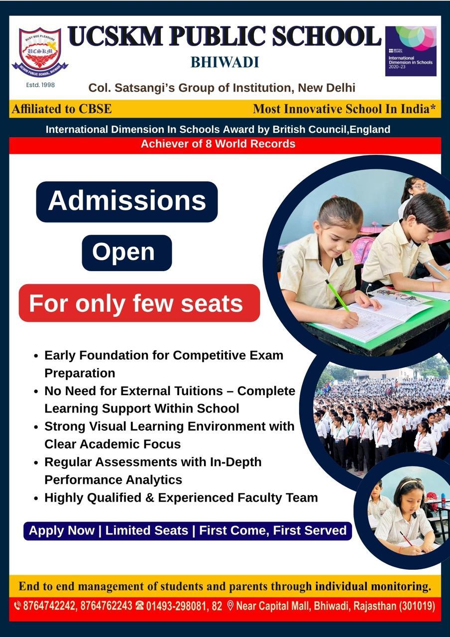 Limited spots are quickly being taken for the upcoming Academic Session. Contact us now to discover a realm of opportunities at UCSKM Public School, Bhiwadi.