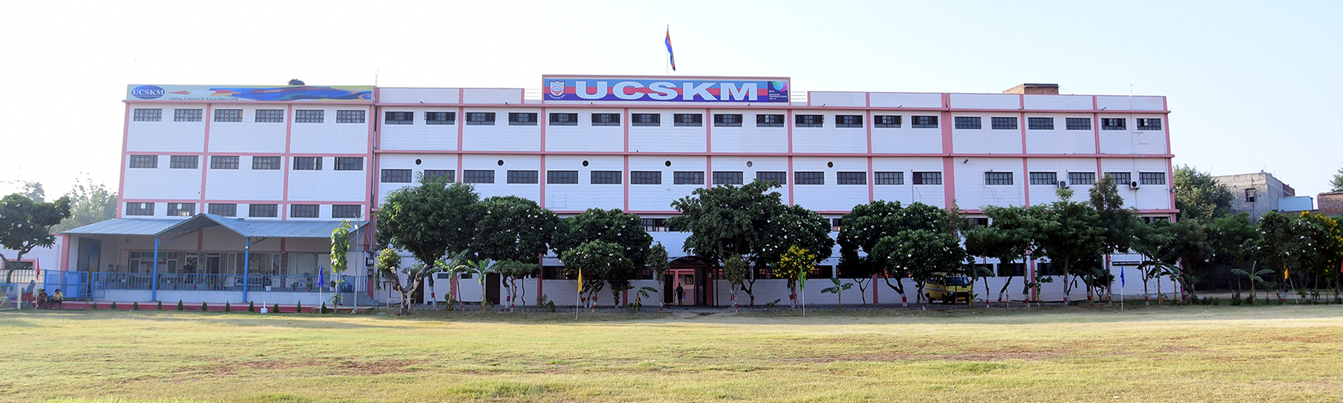 The four storied building's facade complements its large campus with a football ground, a tennis court, a cricket pitch, basketball court, volley ball court, squash court, and a skating ring. The building has four wings - Pre-Primary, Primary, Secondary & Senior Secondary. The class-rooms are big, bright and airy. Its 10 acres of campus is designed to offer every student a varied education in a supportive and safe environment.